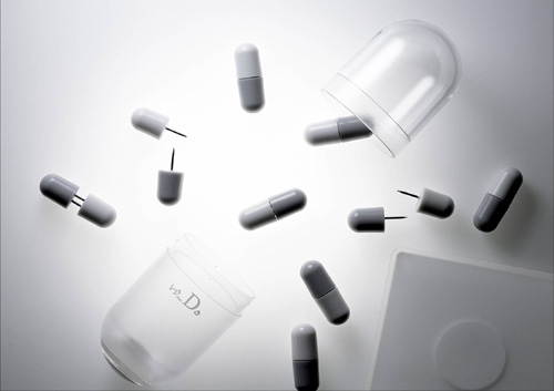 圖釘盒的大膠囊設計,不倒翁原理,可以隨性又穩定的站立。